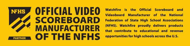 “Watchfire brings you video scoreboards that feed the excitement and capture every electrifying moment. These LED displays keep score, showcase athletes, boost fan participation, and grow sponsorships with eye-catching excellence. Whether alone or paired with a fixed-digit scoreboard, a Watchfire display fires up players, fans and sponsors and comes